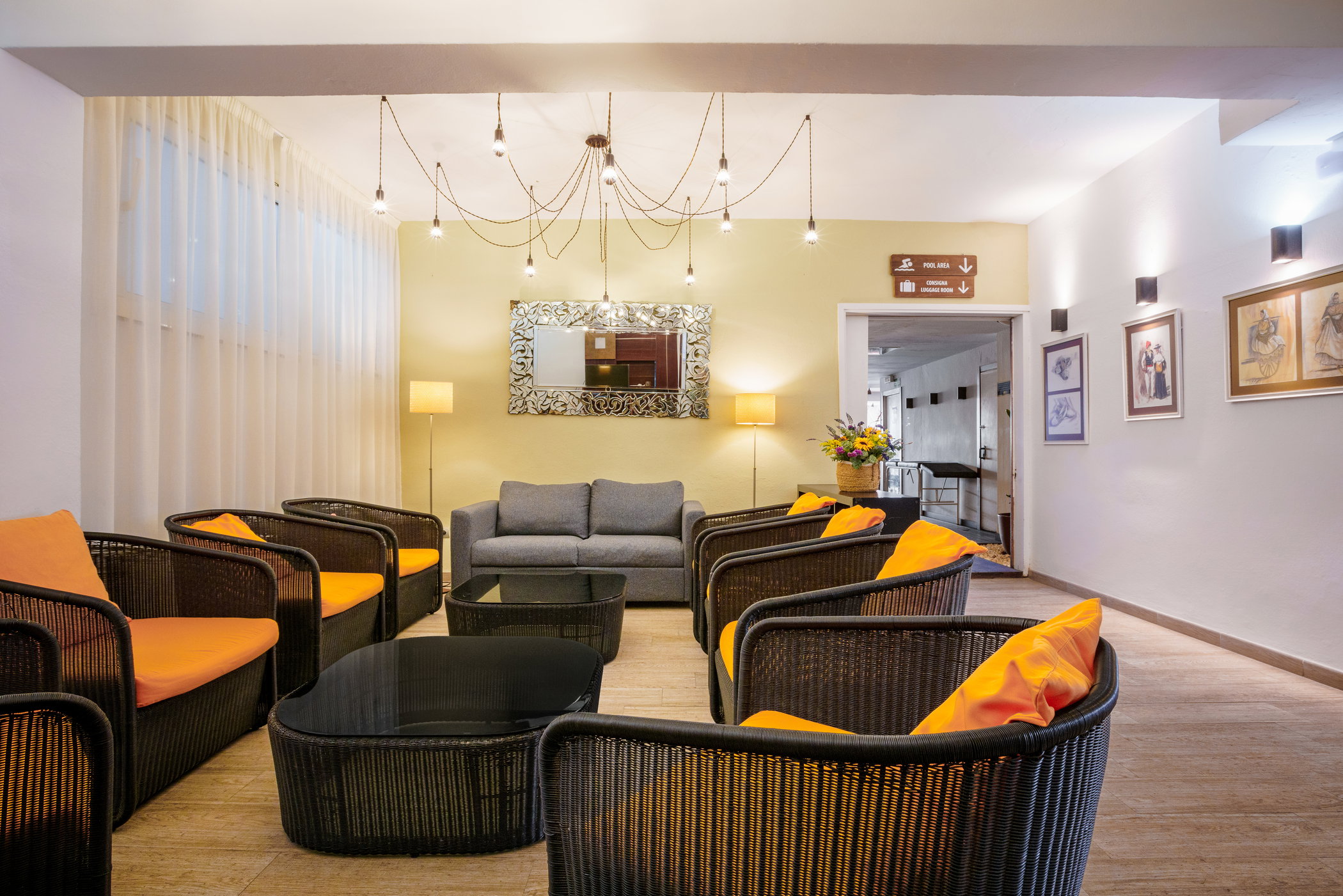 Disponemos de zonas interiores con sofás, mesas y acceso directo a cafetería. Son perfectas para descansar, socializar o planear la próxima excursión.